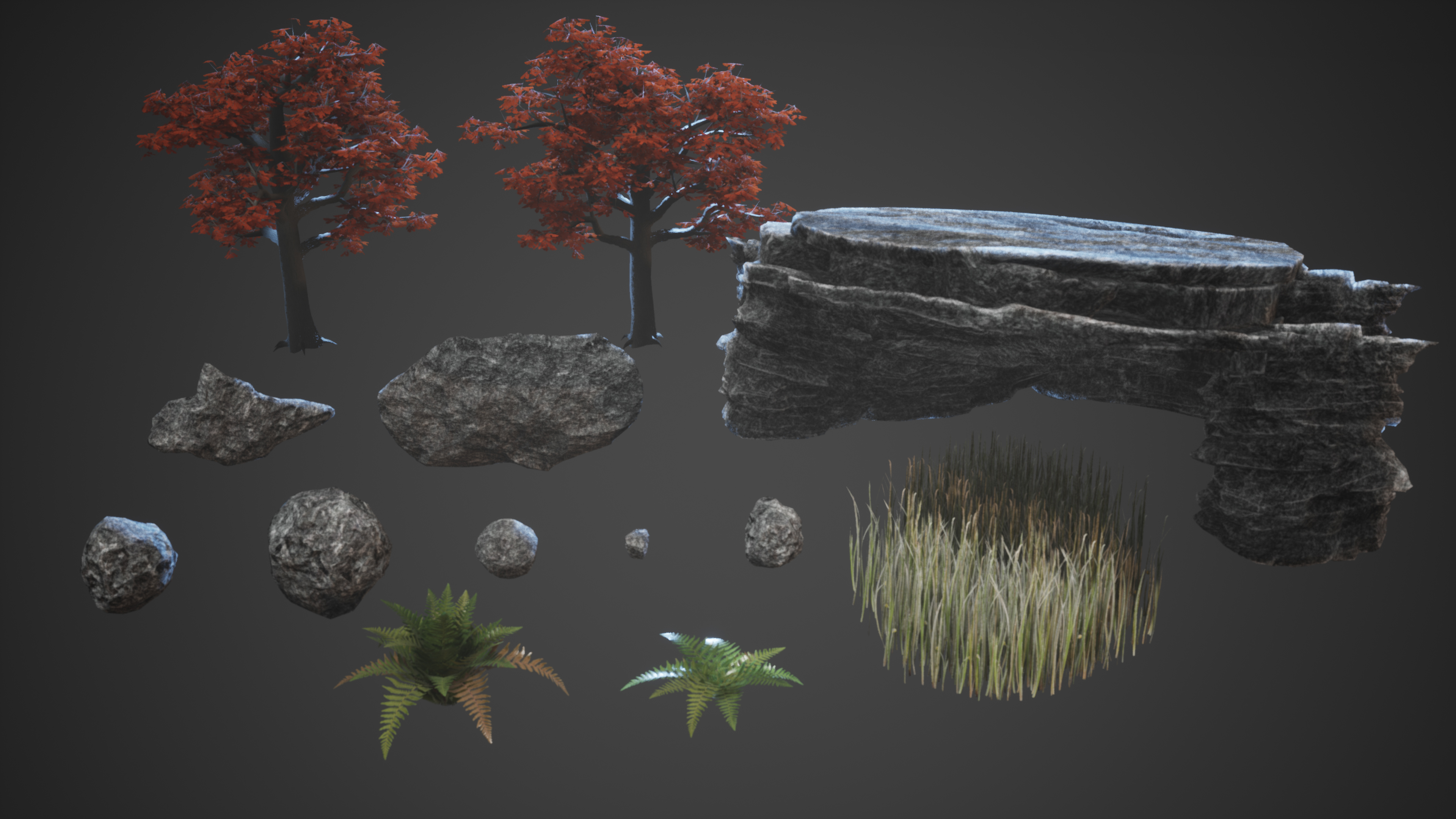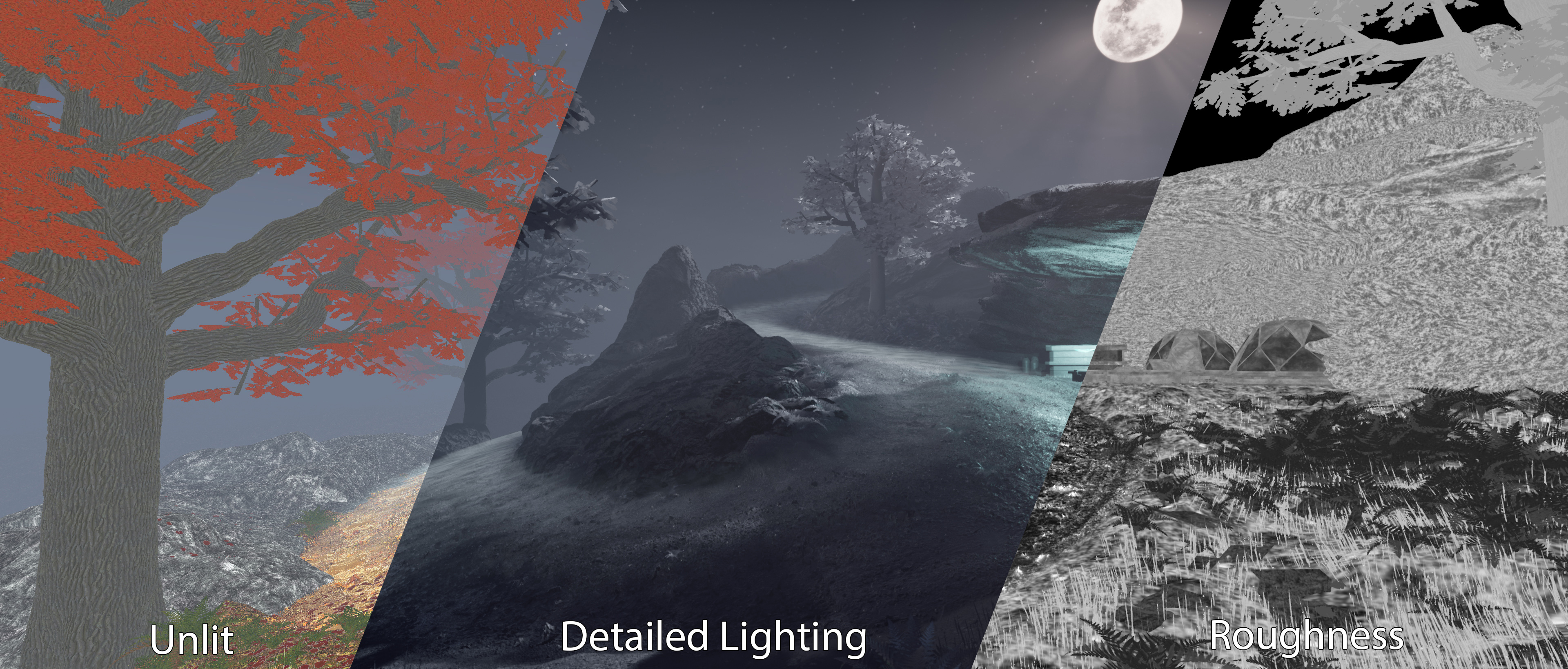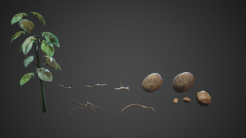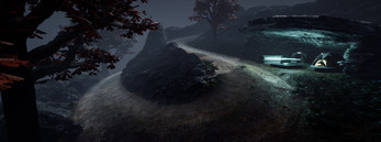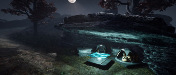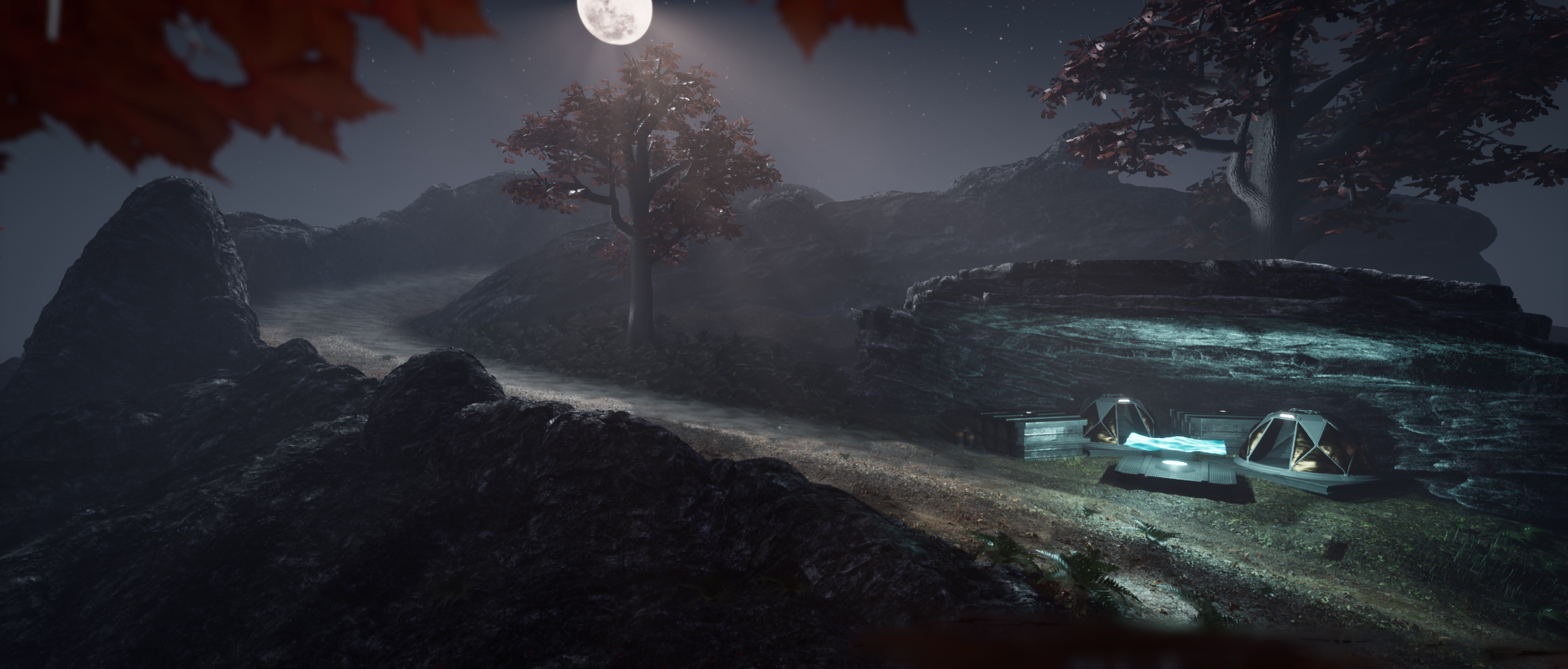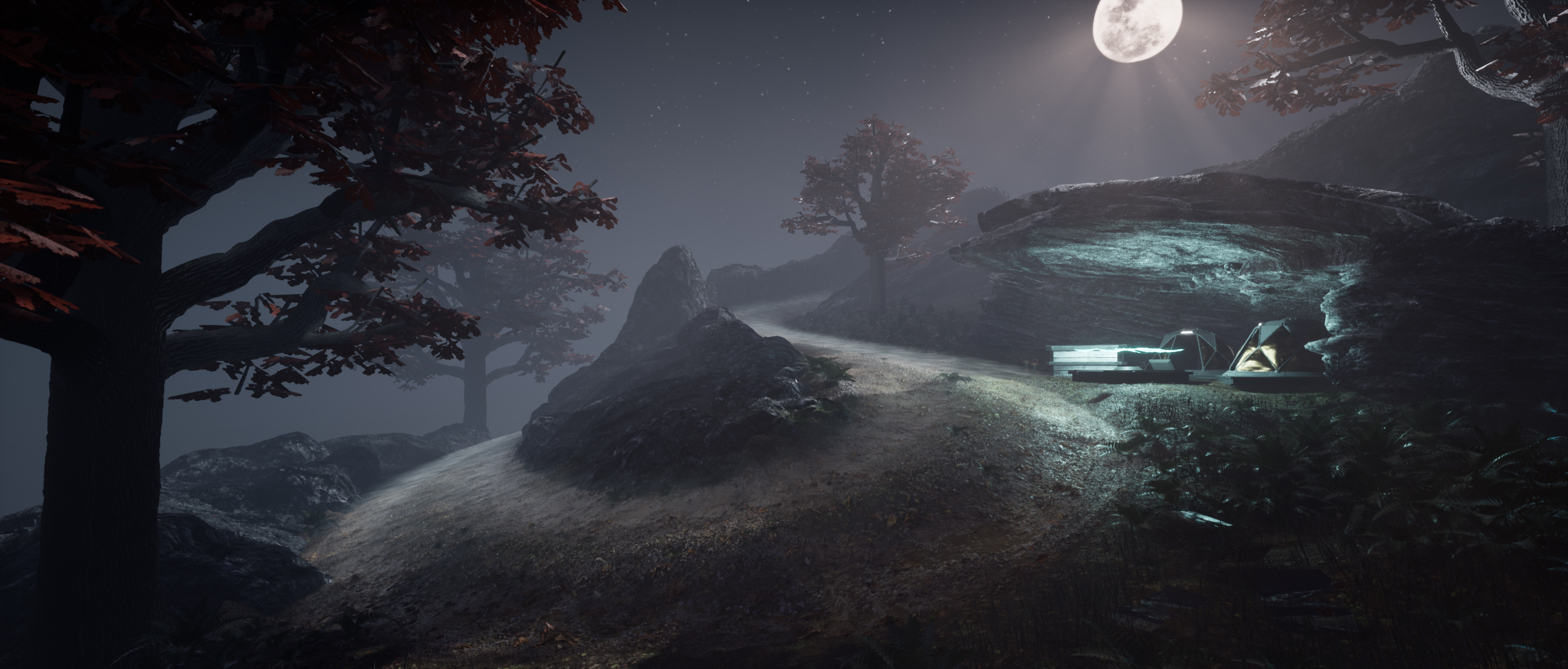 The first scene was inspired by the game Eden Star. For this scene I decide to take a look into photogrammetry to create the mud and track road. The other materials, the types of rocks and tree bark, were made using Substance Designer. All assets follow a high to low poly workflow. The environment is presented inside Unreal Engine 4.