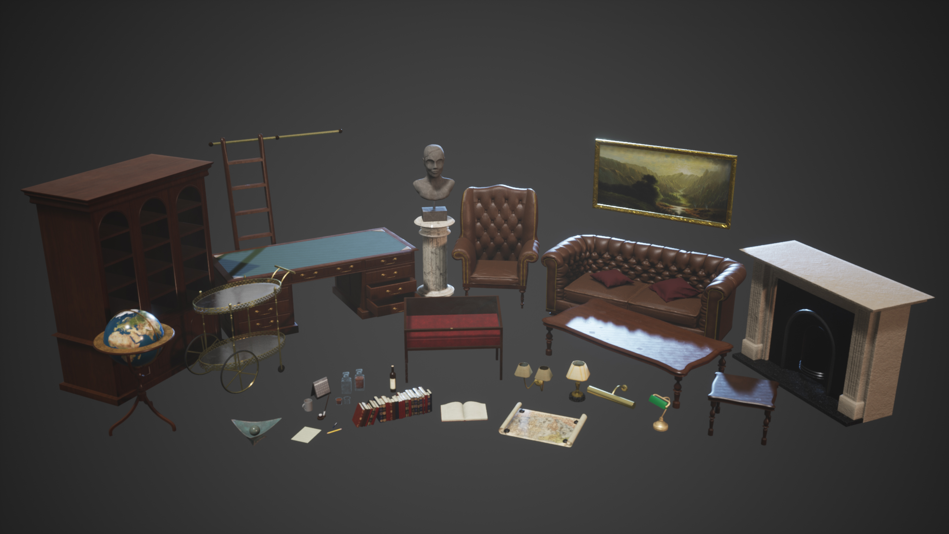 This is a 3D modelled environment of a late Edwardian/Victorian era themed study to be used by an Lara Croft inspired modern day adventurer. The room itself is made from one singular trim sheet. All assets followed high poly to low poly workflow. Textures were all made in Substance Painter and the wood flooring was made in Substance Designer then the whole piece was put together inside UE4.